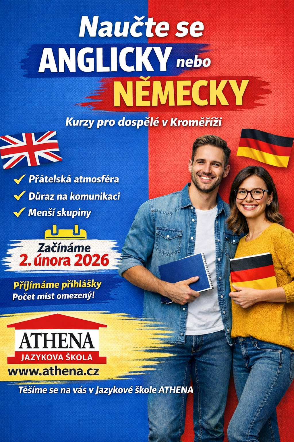 Začněte nový rok s angličtinou: jazykové kurzy od druhého pololetí školního roku 2025/26 se slevou v Jazykové škole ATHENA.